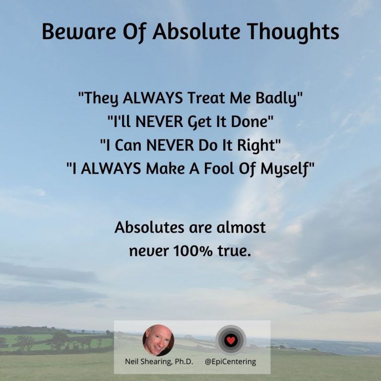 Another example of inspecting your thoughts is checking for "absolute thinking"...
